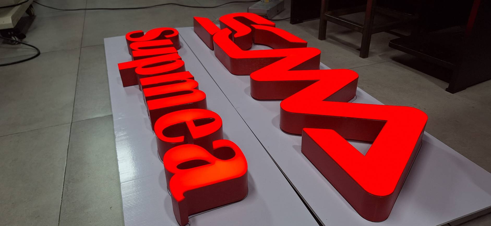 ป้ายโลหะฉลุพ่นอบสี 2K ซ่อนไฟด้านหลัง